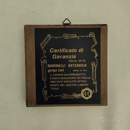 Vendo piccolo quadro dipinto a mano raffigurante paesaggio con albero autunnale su foglia oro 23 carati , lago e montagne sullo sfondo, firmato dall’autore (vedi foto).Dipinto su supporto rigido con elegante cornice in legno e finitura elegante, ideale come complemento d’arredo per ingresso, corridoio o angolo lettura.Dimensioni: circa 9,5 x 9,5 cm. Buone condizioni generali, pronto da appendere.Prezzo: 18 € leggermente trattabili.Consegna a mano in zona (indica città/quartiere); eventuale spedizione a carico dell’acquirente
