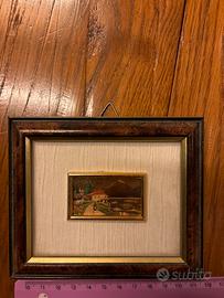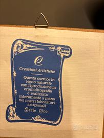 Quadretto con gancio da appendere con cornice in legno e riproduzione cromolitografica, realizzato a mano.