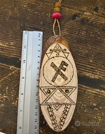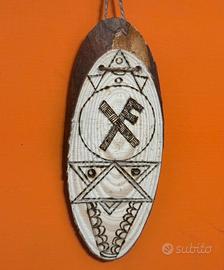 Quadretto Per la Fortuna Pirografato 100% a mano.. buona fortuna e prosperità economica o di buono auspicio