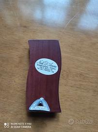Elegante quadretto con cornice in legno e placca argentata raffigurante il volto di Gesù. La cornice ha una linea moderna e sinuosa che rende l’oggetto raffinato e adatto sia come bomboniera religiosa che come complemento d’arredo spirituale.