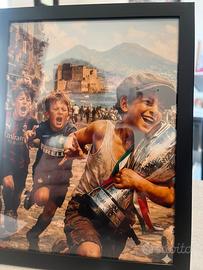 Quadretto con cornice nera 15x20 Foto di scugnizzo napoletano che scappa con la siper coppa italiana.