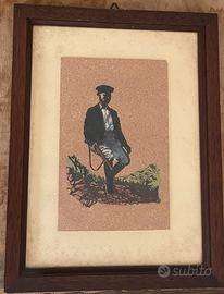 Vendo quadretto vintage con stampa su sughero raffigurante una scena equestre con cavalieri a cavallo. Il quadro è incorniciato con cornice in legno ed è pronto da appendere.
