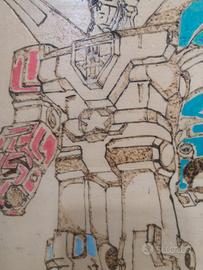 Quadretto in legno disegnato a mano e Pirografato tema #voltron Pirografato e colorato con gancetti per appendere le chiavi. Misura 18x 28x 1