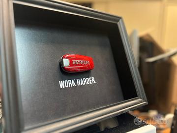Quadretto motivational con chiave con scritta Ferrari e scritta Work Harder