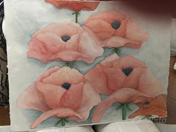 3 acquerelli soggetto fiori senza cornice. Ciclamini misura 76x57. Papaveri misura 76x57. Prezzo 3 acquerelli E 200. Prezzo ciclamini singolo E 70 l’uno. Papavero prezzo singolo 60.