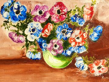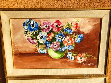 2 quadri ad olio di media misura incorniciati come fa foto raffiguranti fiori molto colorati....
