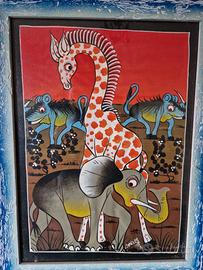 Vendesi quadri africani di artigianato locale realizzati e acquistati in Kenya circa 20 anni fa. Ottime condizioni, tutti compresi di cornice in legno sempre artigianale.
