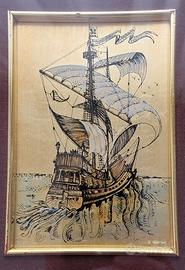 2 quadri anni 70 rappresentanti velieri. Misure 21 x 25 cm. Eur 20 l'uno, in coppia Eur 35.