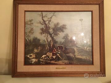 Quadri antichi con cornici di legno e papiri egiziani. Buono stato.