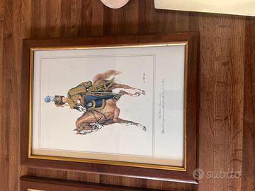 5-7. Tre stampe litografiche colorate a mano 1830-1837: ufficiali a cavallo Reggimento Guardia / Principe (Regno Due Sicilie). Firma S. de T., uniformi pre-unitarie con dettagli oro/blu. ~40x50 cm ciascuna, perfette per militaria.