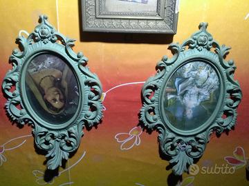 Quadri antichi con cornici in legno gessato o resine. Capezzale. Quadri in argento.