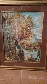 Quadro a mezzo punto rappresentante le ballerine di Degas. Cornice in legno artigianale. Dimensioni cm 45 x 55. Prezzo trattabile. Dispongo di altri quadri a mezzo punto vintage con belle cornici in legno. Il prezzo si riferisce ad ogni singolo quadro.