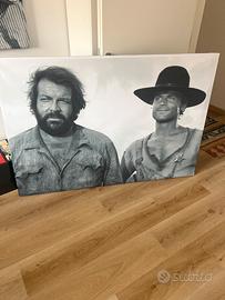 Grande quadro in tessuto Bud Spencer e Terence Hill, raffigurante una scena del film “lo chiamavano trinità” dimensioni 100% 50 circa 100 cm percento 50 circa bianco e nero Solo ritiro a mano