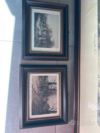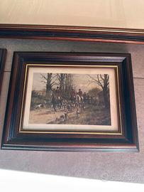 Trittico di quadri con cornice che rappresentano la caccia alla volpe in Inghilterra. Vendo anche separatamente