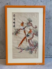 Ricamo su seta tipico Cina / due vintage ovali (23x18) di Mauro Prandi No spedizione