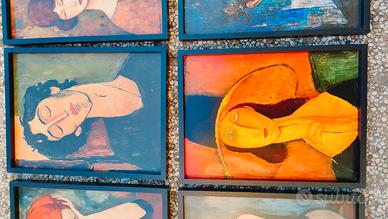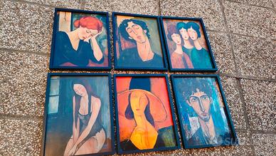 Vendo 6 quadri con cornice 30x40, ispirati a Modigliani. Sono stampe di buona qualità su tela sintetica. Cornice in legno. È stato applicato uno strato di vernice damar lucidante. 6 quadri con cornice 30x40 a 100€ zona stra - Padova est