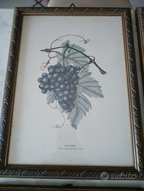 Le stampe di questi quadri sono a tema botanico: uva, ciliegie, pere, prugne. Sono adatti ad arredare taverne o cucine rustiche. Il prezzo si intende per tutti e quattro i quadri. Nel retro dei quadri c'è il timbro del laboratorio artigianale da cui provengono.