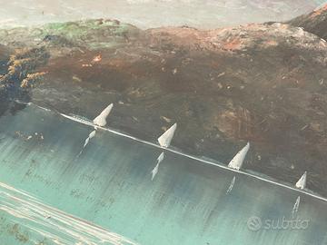 Quadri con paesaggio lacustre d'epoca olio su tela