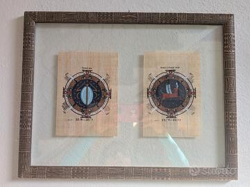 Papiri incorniciati con doppio vetro. 1^ e 4^ foto misura cornice 45x35 cm; papiri 34x25 e 12,5x18. 2^ e 3^ foto misura cornice