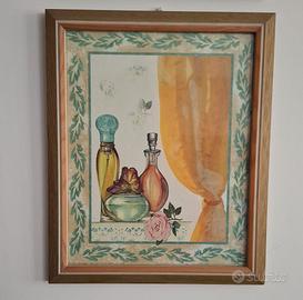 due quadri con stampa di profumi, possono essere ideali per abbellire un bagno misura 34x28 e due quadri con stampa di frutta, possono essere ideali per abbellire una cucina misura 34x28