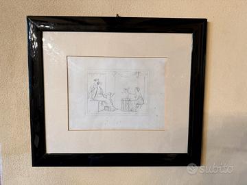 5 stampe effetto disegno a matita neoclassico grecia antica con scene di mitologia e vita quotidiata Cornice nera dimesnioni 49Lx42H