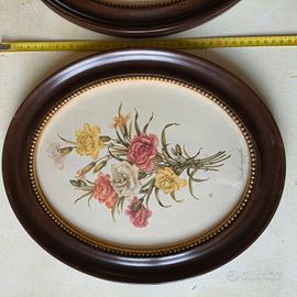 3 quadri cornice ovale con stampe soggetto floreale misura H36 L30