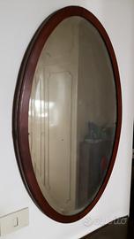 •Specchio antico ovale, con cornice in legno scuro. (foto n 6)