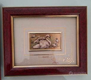 Coppia di quadretti d'arte, 16 cm x 13 cm, realizzati in oro o argento, prodotto da Exitart's e certificato da Goldart International di Ginevra, Svizzera
