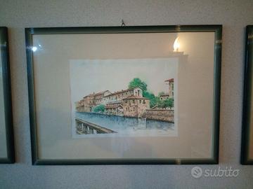 pittori Emauri e Beretta con paesaggi lombardi innevati ecc e paesaggi dei navigli ..perfetti con vetro lungo cm 73 largo cm 53.5 alto 2 cm vero affare