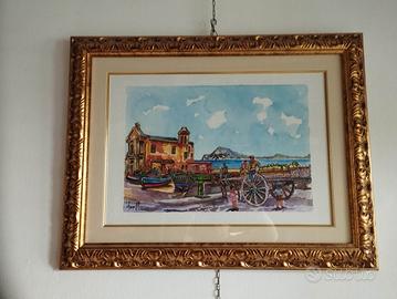 Acquarelli del pittore Lorenzo Vigna il Maggiora con certificato di autenticità. Valore approssimativo 200€ Misura con cornice 68x54