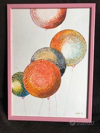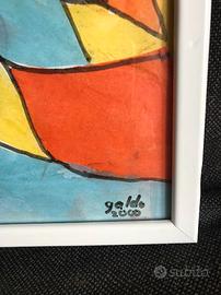 Tre quadri di Libero Galdo già in cornice. Tecnica mista - veline colorate e matita -.