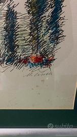 In vendita coppia di litografie del celebre maestro del Novecento Michele Cascella, firmate e numerate a matita dall'artista. Entrambe le opere sono in buono stato di conservazione. Il primo quadro mostra la Veduta di un Casale con Fiori: Una composizione iconica del Maestro, raffigurante un casale di campagna immerso nella natura, con una macchia di fiori colorati in primo piano. Quest'opera fa parte di un'edizione molto esclusiva numerata in numeri romani (XXVI/XXX), con un'ulteriore firma in lastra in basso a destra. Il secondo quadro rappresenta un paesaggio Costiero con Barche. Numerata 120/120 in basso a sinistra e firmata a matita in basso a destra. Non posso spedire. Disponibile però a trattare un po il prezzo se passate e prenderli.