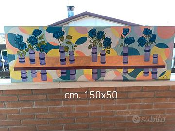 1*Quadro con rose blu dipinto su tela misura cm. 150x50 €20 2*Quadro con calle rosse su tela sfondo geometrico astratto su tela cm. 100x100 €20