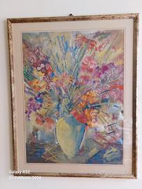 Lotto di due quadri floreali e composizione fiori secchi. Per la.spedizione valutiamo costo e distanza.