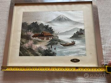 Coppia di quadri vintage originali giapponesi realizzati con l’arte del ricamo di circa 20 anni fa, acquistati al monte Fuji.