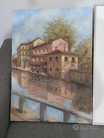 Quadro Vecchia Milano " Naviglio " F.Fantini olio su tela 50x70 con garanzia