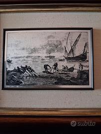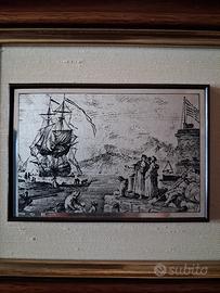 Tre serigrafia su lastra d'argento 800, cornice il legno, interno tessuto