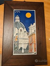 Quadri 'Sorrento' , 'Vietri', 'Amalfi', 'Capri', in ceramica a rilievo di con cornice in legno