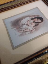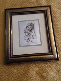 Due piccoli quadri con raffigurate madri con bimbo, dipinti su lamina d'argento
