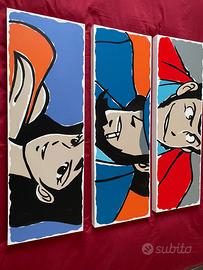 3 tele Lupin Jigen Fujiko 90x30 dipinti a mano otiginali Monkey Punch