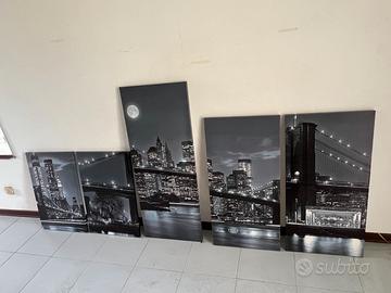 Quadri Manhattan e ponte di Brooklyn in tela, 4 pezzi, paesaggio notturno e luna piena.