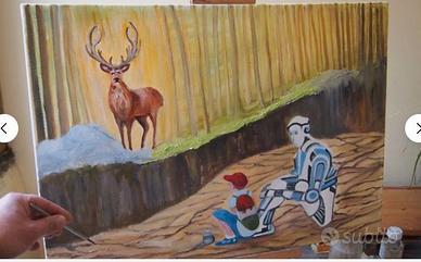 Due quadri moderni tecnica olio su tela foto 1 " ritorno al futuro " olio su tela dim 50x70 dipinto a mano firmato con autentica su retro dell'artista Nuovo Unico