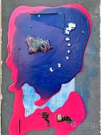 QUADRI MODERNI ASTRATTI DIPINTI A MANO TECNICA MISTA SU LEGNO 15x22cm. TESTA BLU. Salve, sono Bruno Marcelloni.Tra i migliori maestri Umbri di Arte Contemporanea, ho conseguitovari premi nazionali e internazionali e ho partecipato alla Biennaledi Venezia nel 2011. V. Sgarbi gli ha presentato una mostra personalenel 2005 Per qualsiasi domanda, scrivete o telefonate al numero mio: +393333284245 Questa è una idea molto originale e creativa. Mixare smalti colorati conframmenti di tecnologia presi da Tablet e Smartphone gettati neirifiuti. I rifiuti non servono, solo a chi non sa osservare, ma questi pezzi di"Archeologia Tenologica" un giorno saranno in un museo o in una galleria a testimoniare esperienze di comunicazione in tutto il mondo. Spessosi formano paesaggi pittorici in cui si integrano questi residui di tecnologia. Materia, matematica, informatica e metalli rari. Vera storia di questa mia idea Quattro anni fa osservavo attentamente il mio figlio di 15 anni, trascorreva tutti i giorni per 6-8 ore al telefonino con i vari giochi. Era inutile a dirgli che la cosa era negativa. Più passava il tempo più lui si distaccava dal contatto con la natura e dal dialogo con tutte le persone, parenti e amici. Un vero dolore per me. Mi saliva molta rabbia, e dopo 5 mesi è arrivata l'idea di prendere molti smartphone usati e rotti, li ho aperti e fatti in tanti piccoli pezzi. Pezzi anche molto piccoli ma di un grande fascino anche dal lato estetico. Ho avuto l'idea di usare smalti colorati e di appoggiarvi sopra questi frammenti meravigliosi. Si univano cosi gli smalti che dilagavano in modo informale e astratto aquesti pezzi-ogetti molto geometrici. E stato un fiume molto creativoe stimolante. Ho nutrito la mia anima anche se il mio figlio ha continuato a preferire il virtuale a posto della realtà.