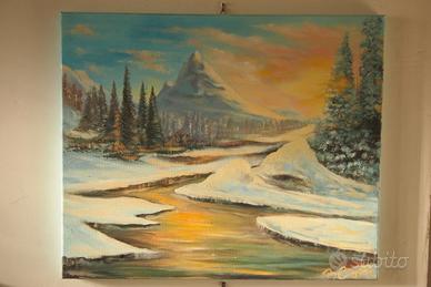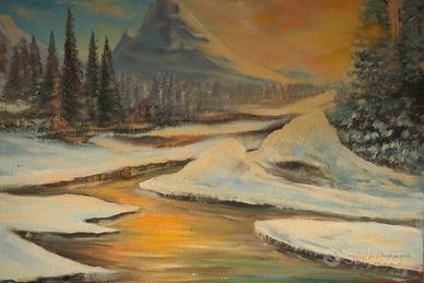 Due bellissimi paesaggi invernali eseguiti con tecnica olio su tela di dimensioni rispettivamente 70x50cm e 60x50cm