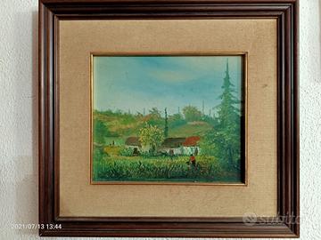 N°2 Quadro Olio su Tela rappresentativo di un villaggio agricolo nel territorio del vulcano Etna.