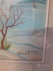 quadri naif olio su tela del pittore Naiat raffigurante paesaggi invernali con coltre di neve e colori caldi e molto intensi già incorniciati con vetro mis 60 x 50 comprensivo di cornice il bordo di quest'ultima è un po da rinfrescare poiché essendo opaca