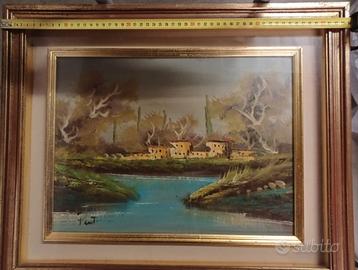 Quadri olio su tela raffiguranti paesaggi campestri, laghi e case. Dipinti dall'artista napoletano Antonio Ponticelli con certificato di garanzia.