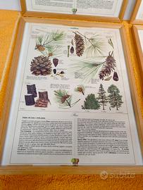 4 quadri Natura con cornice in legno pieno e vetro. 42x32 cm
