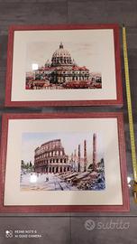 Vendo 4 quadri 2 quadri acquerello raffiguranti Roma formato 43-34 2 quadri olio su tela formato 38x32 Prezzo regalo