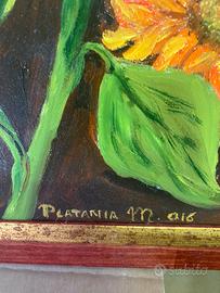 Vendo n.2 quadri olio su tela di noto pittore genovese-soggetti Girasoli misure 42x47 e Iris misure 47x57- cornici fatte su misura.vendo separatamente a 30 cadauno o 50 entrambi.regalo non gradito.consegna a mano su Genova e provincia o spedizione da concordare.